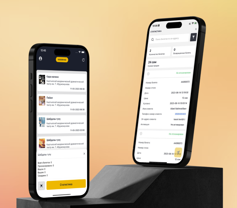 Мы - единственная компания в Кыргызстане, которая предоставляет приложение для сканирования билетов с полной отчетностью. Наша команда разработчиков тщательно контролирует работоспособность и функциональность приложений. В нашем приложении вы можете отслеживать всю необходимую информацию о мероприятии, статистику и прочие данные о вашем мероприятии